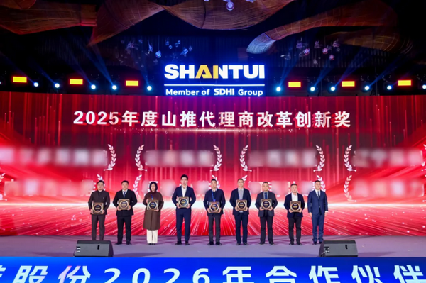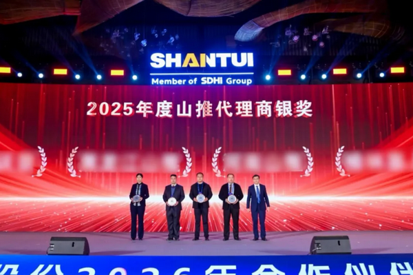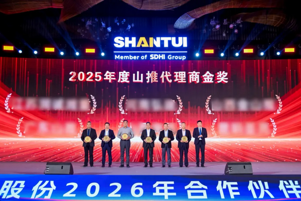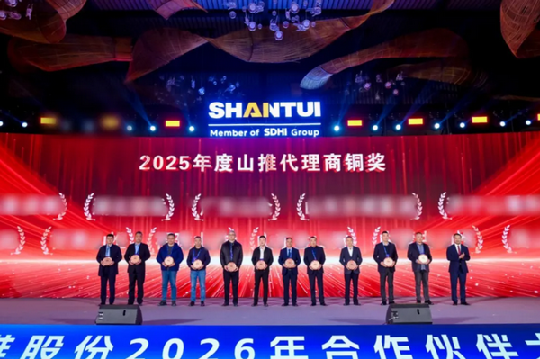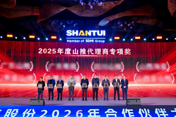 1月9日,以“厚道如山?推新致遠”為主題的山推2026年合作伙伴大會在山東曲阜舉行。會上,山推股份黨委書記、董事長李士振為山推AI智慧展廳開館揭幕;總經理張民作主旨報告。來自全國各地的400余位合作伙伴齊聚尼山,圍繞企業戰略轉型與產品迭代升級深入交流,共話合作情誼,共繪發展藍圖。