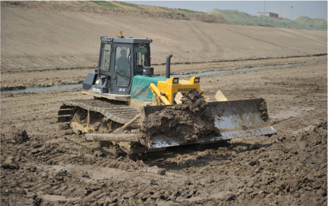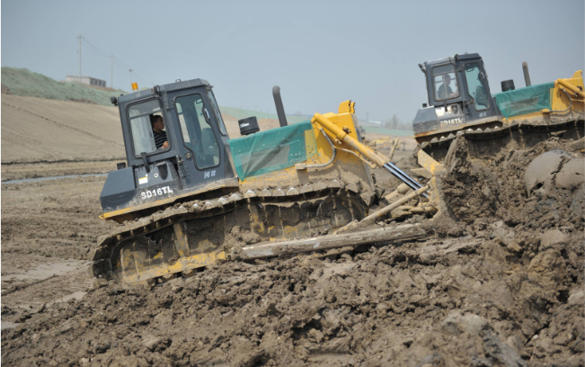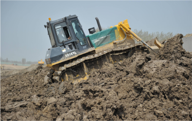 十幾輛山推SD16TL推土機在運河河道內作業,“馬力大、省油、駕駛室還舒服”,推土機駕駛員毫不掩飾的夸贊這些推土機。SD16TL推土機超寬的三角型履帶避免了機器在軟土、濕地、沼澤地帶等松軟物料作業場所作業時的下陷,在河道拓寬、清淤等水利工程施工中具備無可比擬的作業能力。