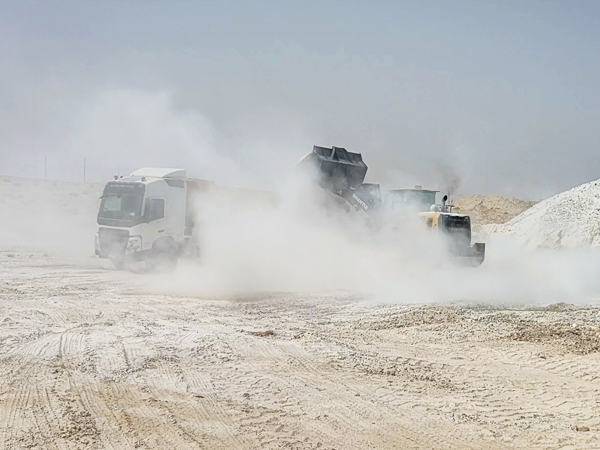 黃沙漫卷的中東沙漠腹地,地表溫度夏季可達50℃,漫天沙塵與持續高強度作業,是對工程機械的終極考驗。在這里,15臺山推L76-C5砂石版裝載機組成的“鋼鐵軍團”,已成為當地路橋修建、光伏搭建、攪拌站運維等工程的核心力量,用超8000小時的穩定運轉,在沙海中筑起了可靠的施工防線。