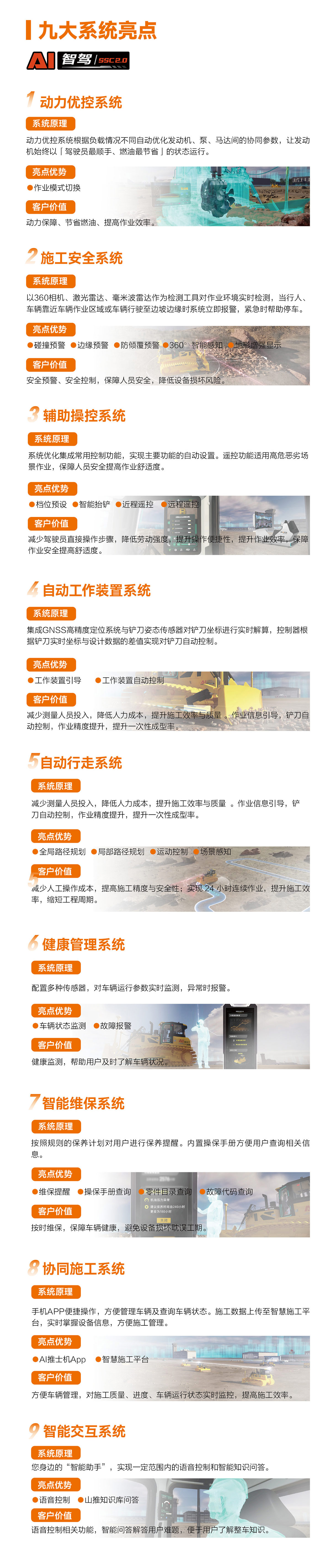 AI智駕:DH17-G 推土機(jī),可基于山推SSC( SHANTUI Smart Constuction)技術(shù)平臺實(shí)現(xiàn)AI升級,融合人工智能、大數(shù)據(jù)相關(guān)技術(shù),構(gòu)建 “感知 - 決策 - 執(zhí)行” 全智能閉環(huán),實(shí)現(xiàn)工況研判、路徑動(dòng)態(tài)優(yōu)化、鏟刀厘米級精控,以技術(shù)革新引領(lǐng)工程機(jī)械智能化躍遷,是行業(yè)從 “機(jī)械作業(yè)” 向 “智能決策” 跨越的典范之作。